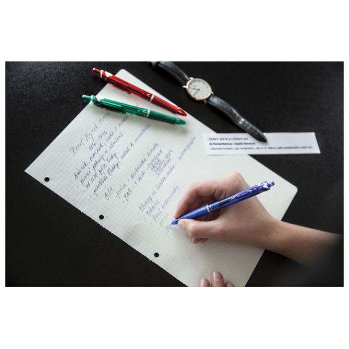 promjer kuglice: 0,7 mm, širina ispisa: 0,25 mm; ergonomski gumirani grip; plastična klipsa i vrh; spremnik mutno proziran; nova generacija tinte na bazi ulja, vodootporna i brzo se suši; omogućuje neuobičajeno glatko pisanje bez prekidanja crte; pritisni mehanizam; Begreen – 77,4 % izrađen od recikliranih plastičnih boca (izuzev zamjenjivih dijelova); uložak BRFV-10F