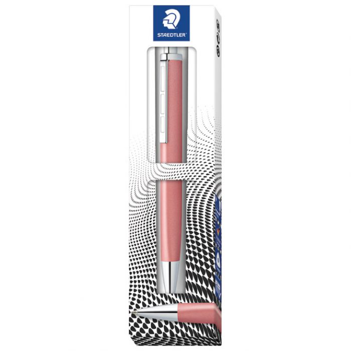 širina ispisa: M; metalna; uložak velikog kapaciteta (G2); sa ugraviranim natpisom STAEDTLER na prstenu i STAEDTLER Mars na kapici; boja tinte: plava; u kartonskoj poklon kutiji