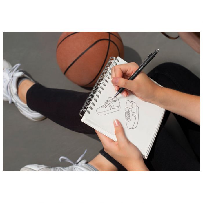 mina 0,7 mm; s gumicom koja se izvlači okretnim mehanizmom (twist-out) i može se zamijeniti; gumirani grip; metalni vrh i klipsa; za pisanje i crtanje sa vrhom koji se posve uvlači u olovku; sistem protiv pucanja mina