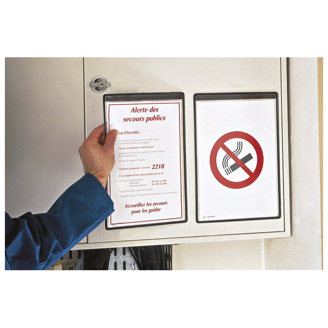 format: A4; PVC; magnet na gornjem rubu; za sve metalne površine; boja okvira: crna