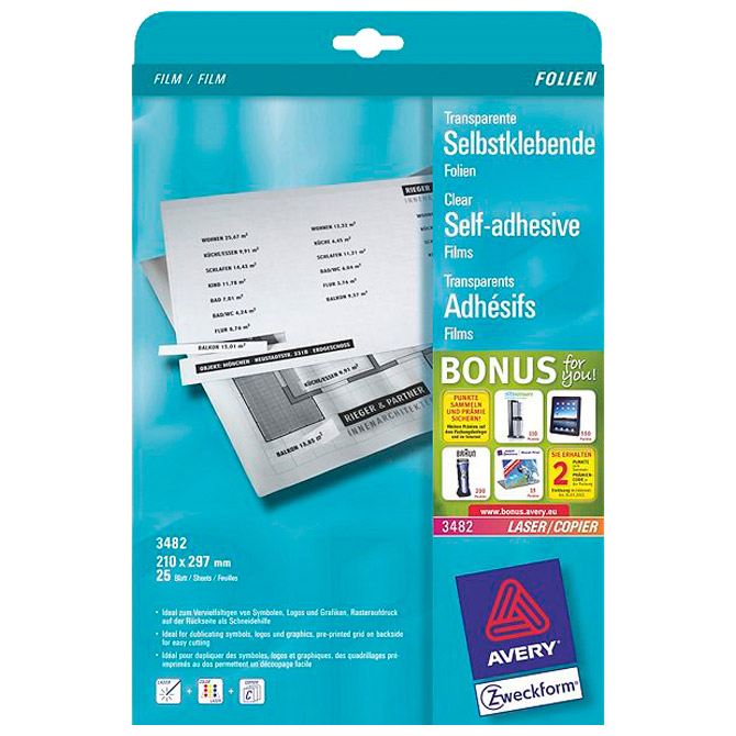 Folija LK A4 samoljepljiva 140my pk25 Zweckform 3482 prozirna