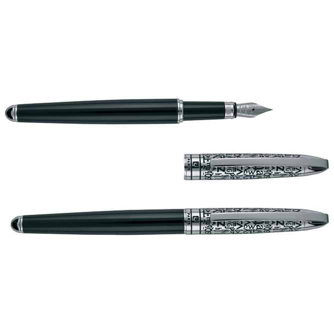 sadrži: kemijsku olovku (promjer kuglice: 1,0 mm; metalno tijelo olovke te vrh i klipsa; okretni (twist) mehanizam; boja tinte: plava; sa dodatnim uloškom (crnim)) i nalivpero (standardna plava patrona); u poklon kutiji Pierre Cardin