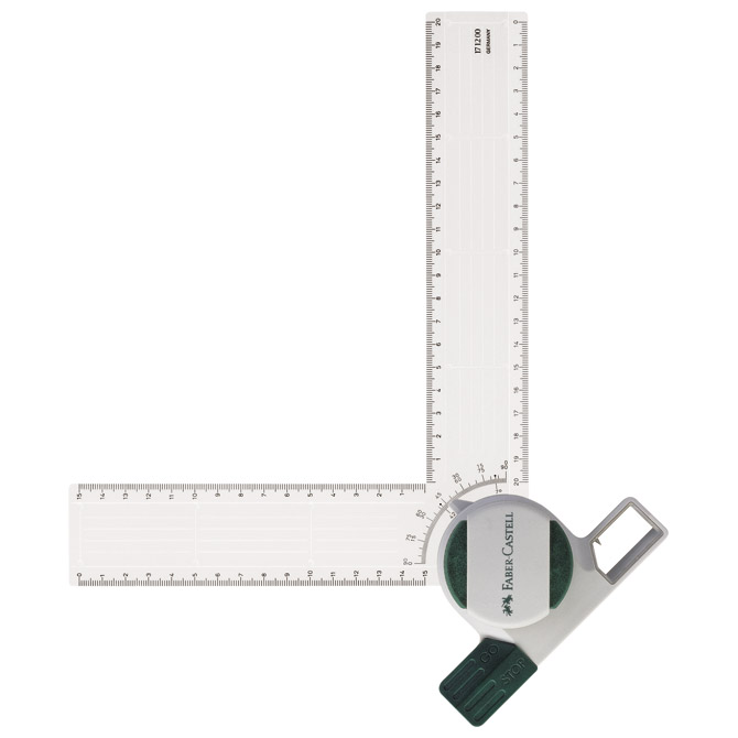 za A3 i A4 crtače ploče; vodilica uzduž paralelnih ravnala; potpuno iskoristiv desni kut; smjernice za sjenčanje; tipka za zaključavanje; okret desnog kuta kroz cijelih 90 stupnjeva; 15 stupnjeva dodatak; fina korekcija: 1 stupanj
