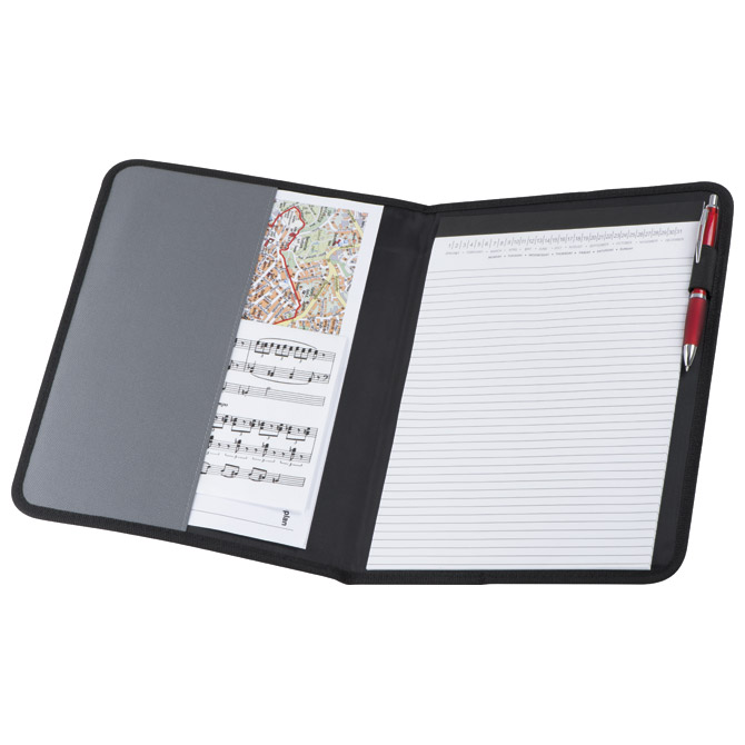 format: A4; dimenzija: 24,6×32,2×1 cm; sadrži: blok za bilješke (20 listova), mjesto za olovku i 1 pretinac; preklopna