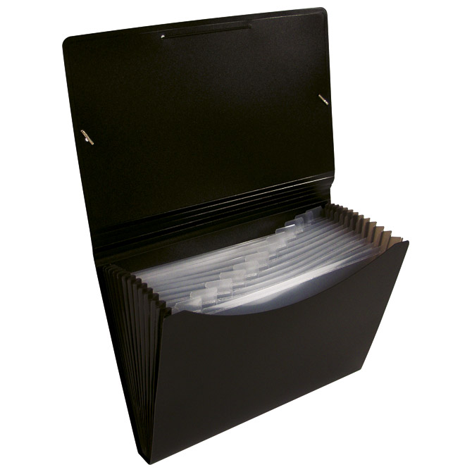 format: A4; dimenzija: 240x330x30 mm; ima 12 pregrada; zatvaranje s gumicom
