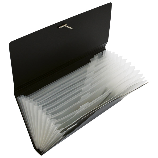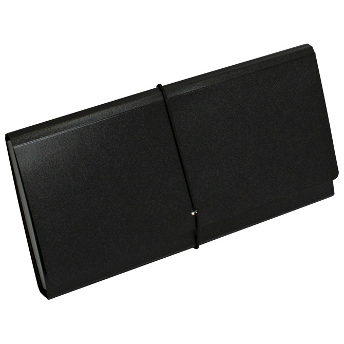 dimenzija: 265x130x35 mm; PP; za čekove; ima 12 pregrada; zatvaranje s gumicom
