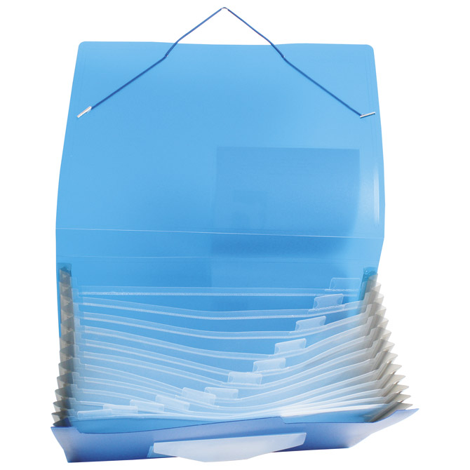 format: A4; dimenzija: 330x240x30 mm; PP; ima 12 pregrada; s gumicom