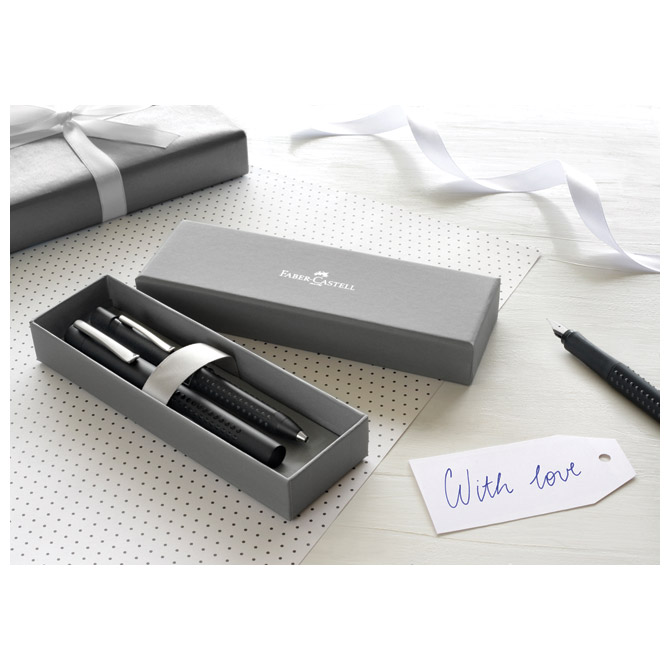 jedinstveni Grip dizajn; mekani grip za ugodnije pisanje; optimalna kombinacija tinte i vrha nalivpera omogućuje izuzetno glatko, nesmetano i lagano pisanje; metalna klipsa (srebrna) i vrh od nehrđajućeg čelika (srebrni); uravnotežena težina poklopca i kada je pričvršćena na stražnji kraj; pogodno i za ljevake; može se koristiti klasična patrona ili pumpica Faber Castell; u kartonskoj poklon kutiji