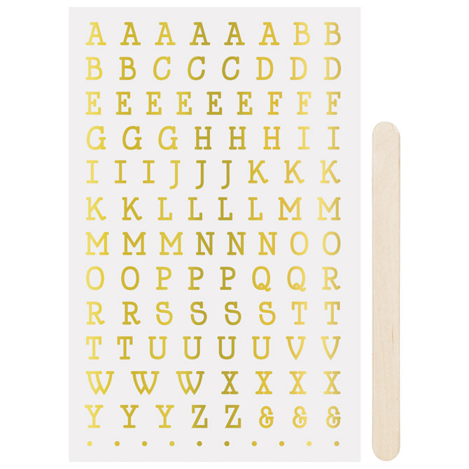 sadrži: 1 list sa slovima: 10×19 cm i 1 drveni štapić; idealan za dekoriranje papira i kartona, također prenosiv na glatke površine poput stakla, porculana, drva i mnogih drugih u dekorativne svrhe; sa uputama (izrezati motive, odlijepiti podložnu foliju, staviti na odabrano mjesto i prenijeti trljanjem sa štapićem); nije perivo u perilici posuđa; blister