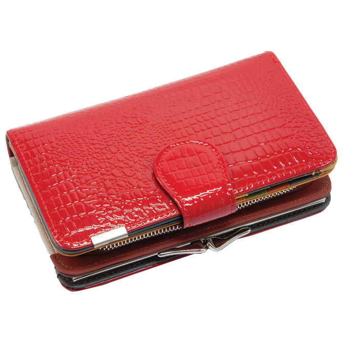 kožni; ženski; lakirani; odjeljak za sitni novac i kartice; zatvaranje na zip, gumb i kopču; dimenzija: 16×10 cm; u poklon kutiji