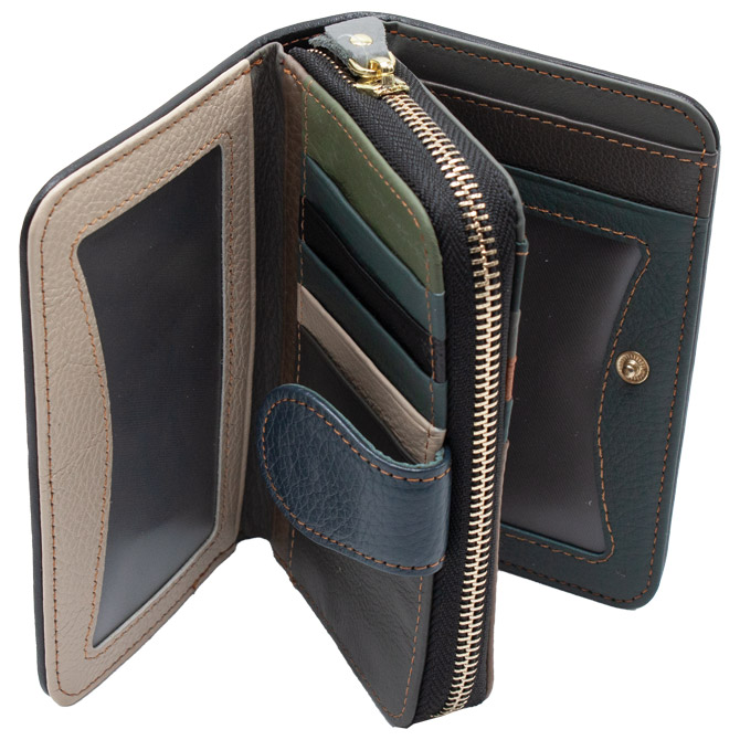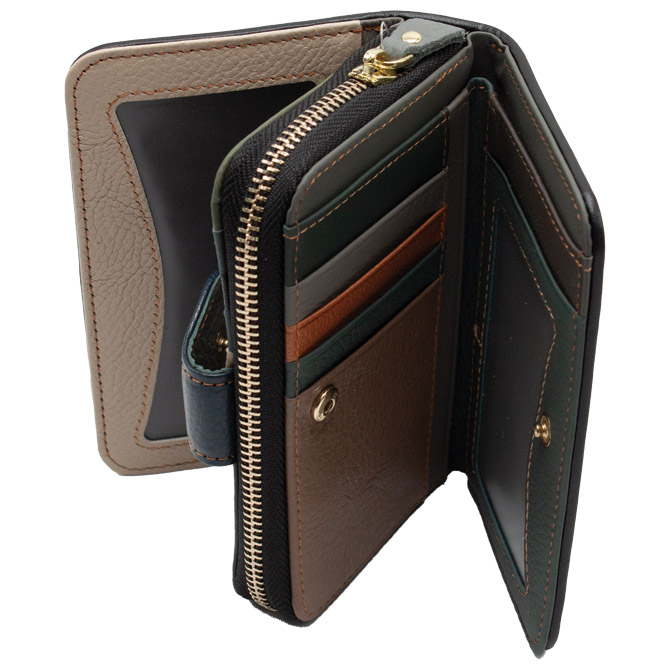 kožni; ženski; odjeljak za sitni novac i kartice; zatvaranje na zip i gumb; dimenzija: 14×9 cm; u poklon kutiji