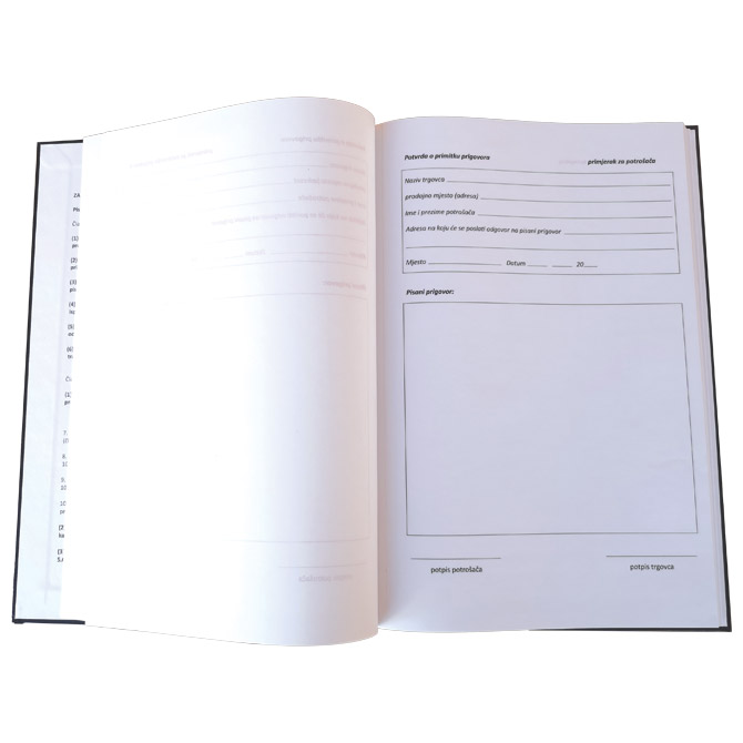 2 x 50 NCR listova, 21 x 29,7 cm + dodatak karton – šator (Obavijest o načinu podnošenja pisanog prigovora) dim.19 x 22,5 cm