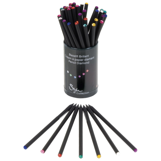 tvrdoća: HB; šiljena; duljina: 18 cm; bez gumice; okrugla; na vrhu olovke je dijamant: sortirane boje