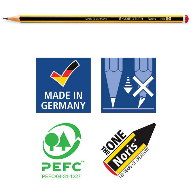 šiljena; bez gumice; vrhunske kvalitete; za pisanje, crtanje i skiciranje; lako se šilji; izuzetno otporna na lom; izrađena od certificiranog drva