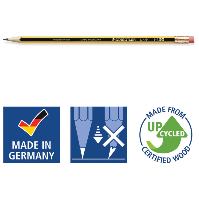 tvrdoća: HB; šiljena; s gumicom (bez lateksa i PVC-a); vrhunske kvalitete; za pisanje, crtanje i skiciranje; lako se šilji; izuzetno otporna na lom; izrađena od certificiranog drva