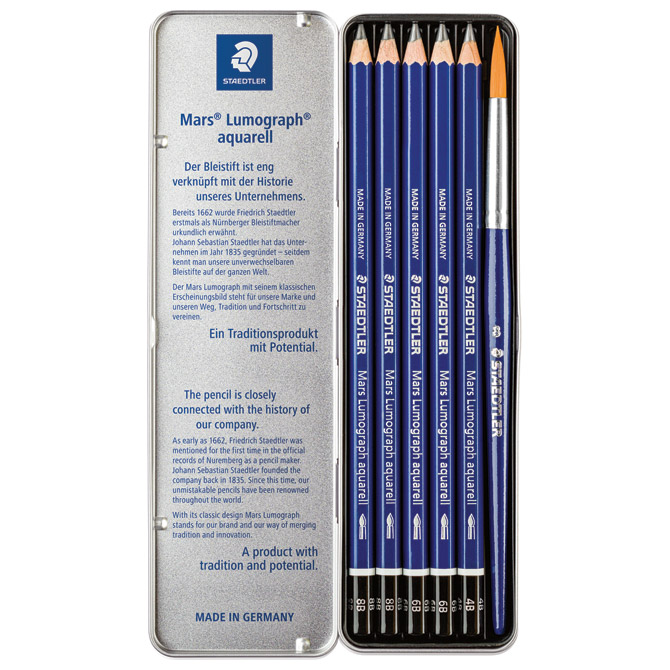 Olovka grafitna pk5+kist u metalnoj kutiji Mars Lumograph aquarell DesignJourney Staedtler 100A G6!!