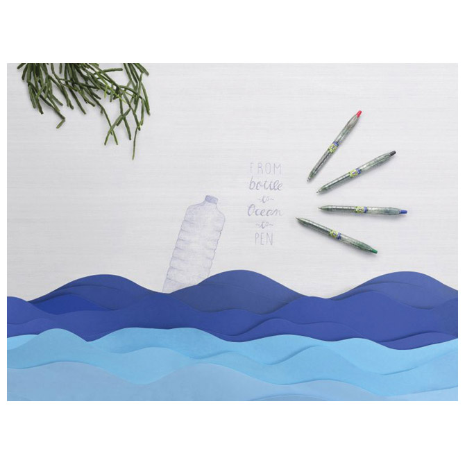promjer kuglice: 1,0 mm; širina ispisa: 0,27 mm; plastična klipsa i vrh; tinta na bazi ulja; omogućuje neuobičajeno glatko pisanje bez prekidanja crte; spremnik mutno proziran; pritisni mehanizam; B2P = “From bottle to pen” ideja da se učini “bolje sa manje” kako bi se ograničio ekološki utjecaj, Begreen – 86,6 % izrađen od recikliranih plastičnih boca (izuzev zamjenjivih dijelova) od kojih je 2,5 % reciklirana oceanska kruta plastika što je vrlo učinkovit i inovativan način sudjelovanja u borbi protiv onečišćenja mora; uložak RFNS-GG