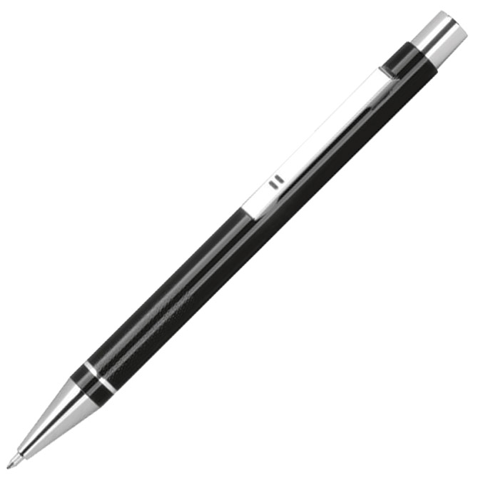 metalna; izrađena od aluminija; s plavim polu-gel uloškom (vrh 1 mm) i narovašenim rukohvatom