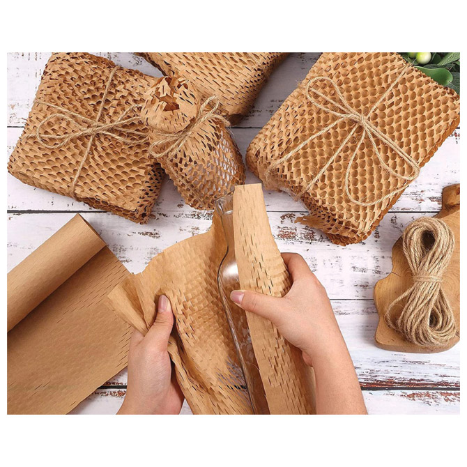 rola; smeđi kraft papir; saćaste strukture; 80 g/m2; održiv, ekološki i 100% biorazgradiv; jednostavno ekološki prihvatljivo rješenje za omatanje; malih dimenzija, može se postaviti bilo gdje; lako se trga na potrebnu duljinu, eliminira otpad i potrebu za škarama; savršeno za startupove i kućne web trgovine; održiva alternativa mjehurićastoj foliji