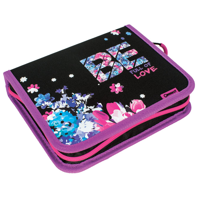 1 zip, 2 preklopa; sadrži 35 komada pribora: flomaster školski 12 boja, boje drvene 12 boja, olovka grafitna HB x 2 komada, šiljilo, gumica, ravnalo pvc, olovka kemijska trobojna, olovka tehnička 0,5 mm, mine 0,5 mm, olovka kemijska i raspored sati x 2 komada; dimenzija: 20x16x4 cm