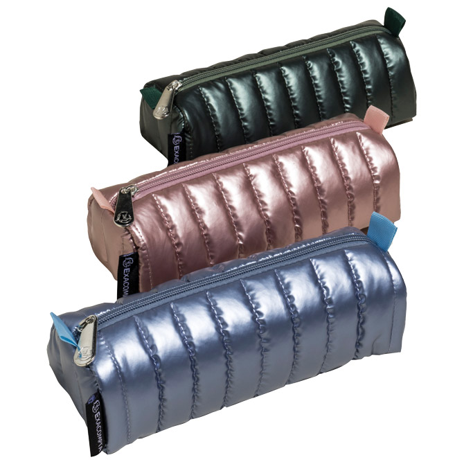 materijal: poliester; vanjske dimenzije: 22×8,5×7 cm; razne boje: metalizirano (plava – zelena – ružičasta); vrsta zatvaranja: patentni zatvarač; težina jedinice: 36 g