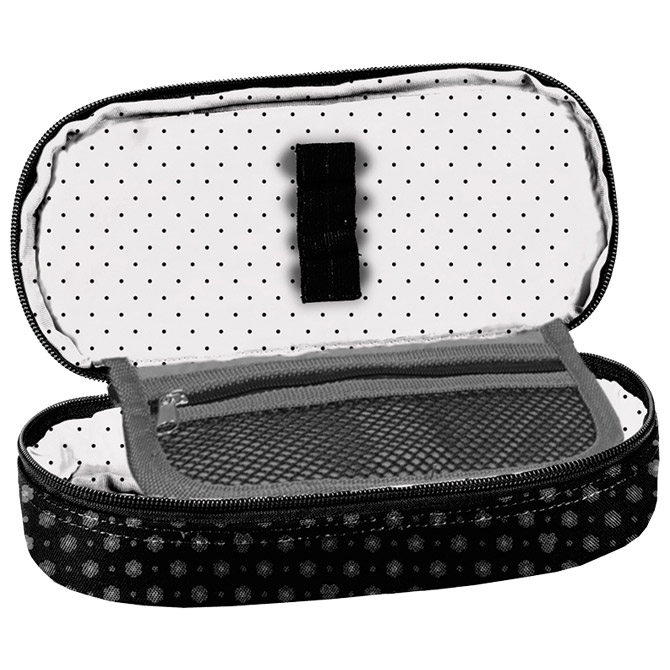 pravokutna; 1 zip; dodatna pregrada s unutrašnje strane; dimenzija: 24x11x5 cm; sirovinski sastav: poliester