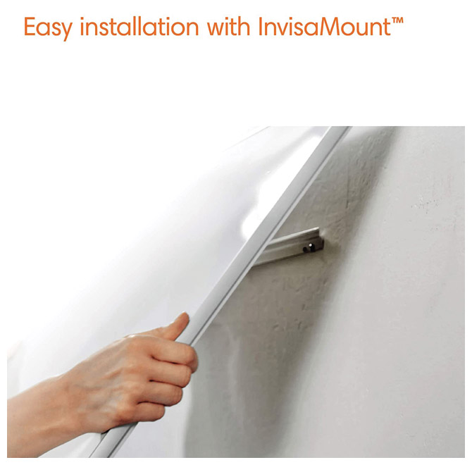 NanoClean™ površina: čelična magnetna površina ploče pruža povećanu mogućnost brisanja, za umjerenu upotrebu; tanak i elegantan aluminijski okvir debljine 6 mm maksimizira prostor za pisanje po ploči; sustav InvisaMount™ čini instalaciju jednostavnom, a pričvršćivači su uredno skriveni iza bijele ploče; koriste se markeri za bijelu ploču; ima elegantni držač za markere i brisač na donjem rubu ploče; sadrži: crni Nobo marker za bijelu ploču; garancija na površinu ploče 15 godina