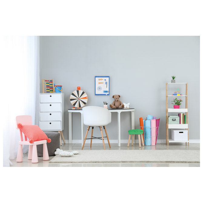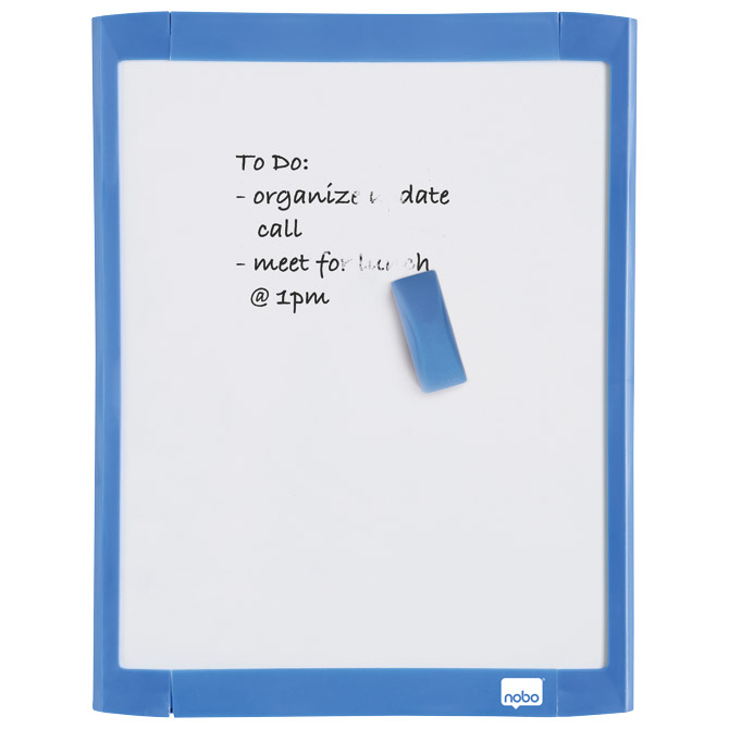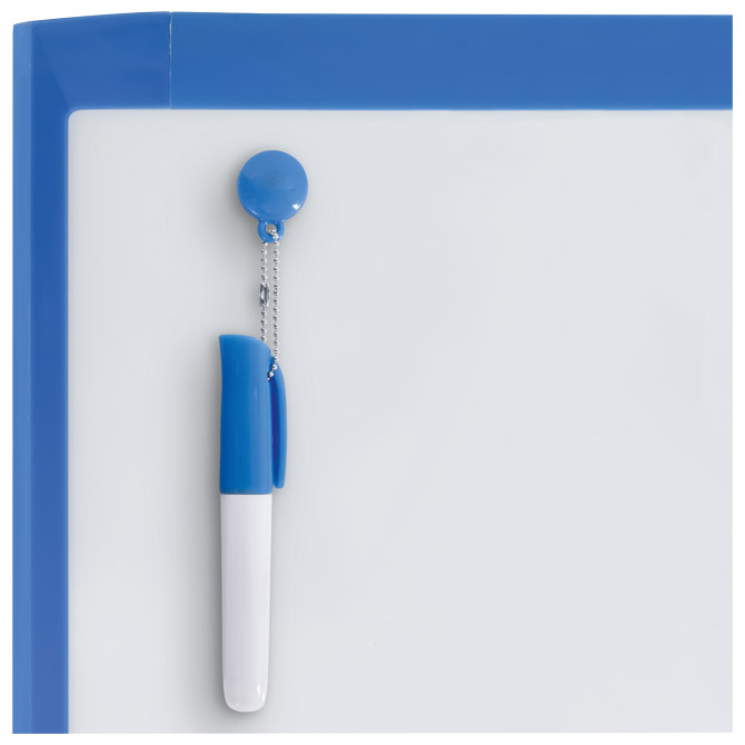 dimenzija: 21,6×28 cm; s okvirom: plavi, rozi i zeleni; koriste se markeri za bijelu ploču; sadrži: brisač za bijelu ploču magnetni, marker i pribor za montažu