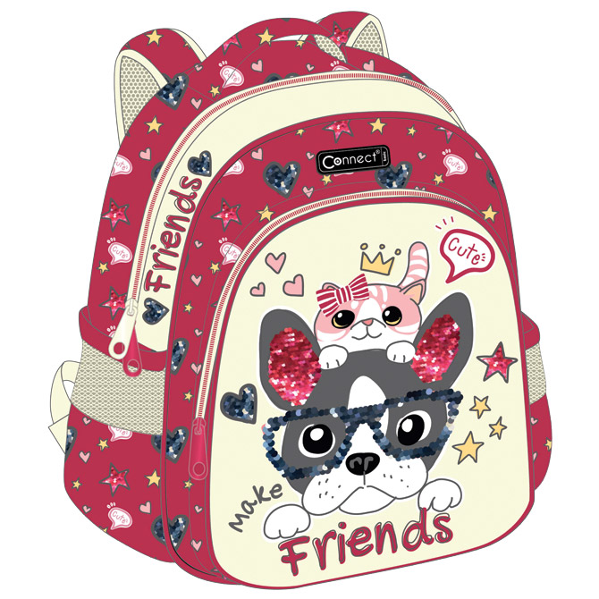 dimenzija: 27x31x10 cm; podstavljene naramenice; remenčići za podešavanje; ojačana ručka za nošenje; 1 odjeljak sa zatvaranjem na zip; 1 džep na zip s prednje strane; pretinci na bočnim stranama; ima mjesto za napisati ime; sirovinski sastav: poliester