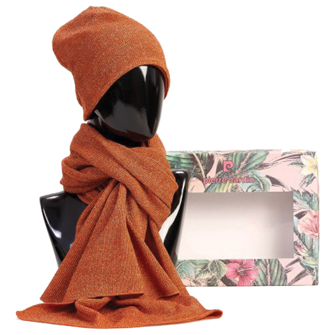 Set poklon ženski kapa i šal Pierre Cardin 1085 naranđasti