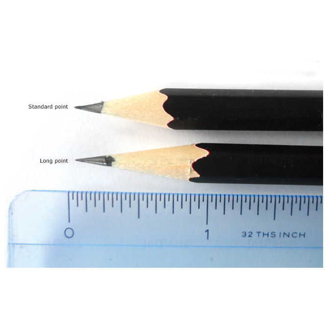 metalno; u PVC kutiji; 4 rupe: 2 rupe su za olovke standardne debljine do fi: 8 mm (broj 1 na šiljilu je mjesto za šiljenje drva gdje se odvaja drvo od mine dok mina ne dođe do Automatic Stop, a broj 2 je za šiljenje mine do kraja; odvojeno šiljenje drva i mine daje vrlo poboljšane performanse), 2 rupe sa bočne strane su za šiljenje mina debljine 2 mm i 3,15 mm; dobiju se dva rezervna noža; precizno šiljilo za sve koji žele dugu i preciznu olovku: tehničare, inženjere, dizajnere, arhitekte, umjetnike i sl.; razlog tome je što nož šilji olovke pod posebno malim kutom a time se može formirati ekstremno dug i tanak vrh pa se sitni detalji i linije mogu lako nacrtati; vrh će ostati oštar dulje vrijeme pa se olovke ne moraju često šiljiti; budući da je vrh iznimno tanak, šiljilo je prikladno samo za visokokvalitetne olovke; automatsko zaustavljanje kontrolira dugačke, fine vrhove olovki i izbjegava nepotrebno trošenje; Dynamic Torsion Action – zakrivljeni nož omogućava neprekidno izvrsno šiljenje i eliminira pucanje mine