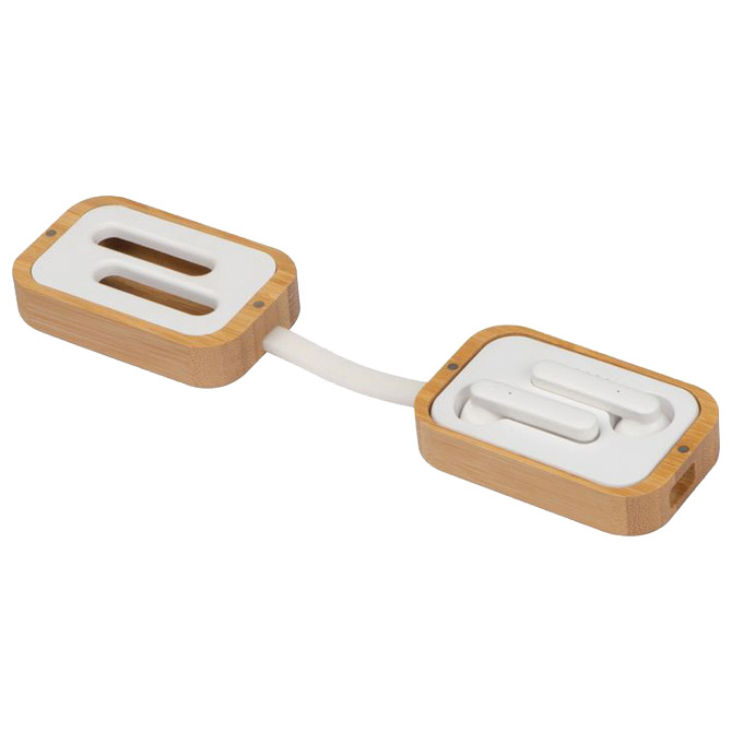 ergonomske bluetooth 5.0 slušalice s indikatorom punjenja s USB postoljem za punjenje koja služi i kao ambalaža; domet do 10 metara; vrijeme punjenja cca 1 sat, vrijeme rada 2-3 sata i baterija od 300 mAh; dimenzija: 7,5 × 4,7 × 3,2 cm