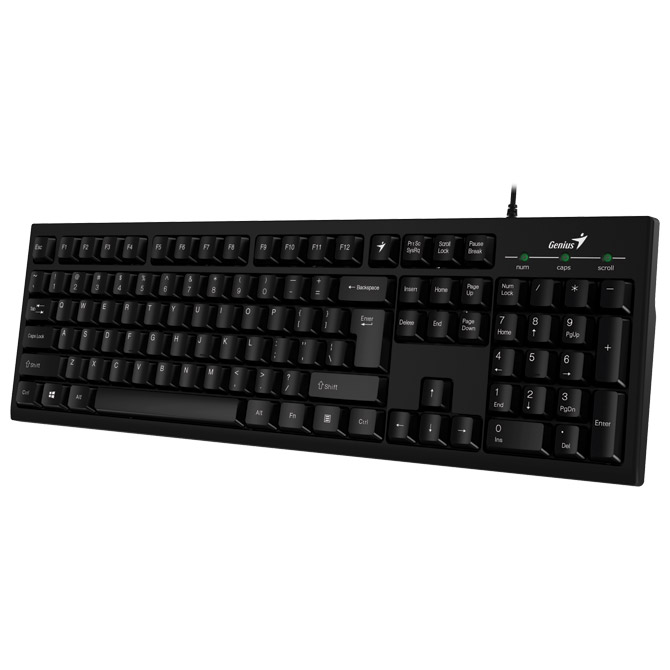 USB; membranska; žičana; klasična tipkovnica s 12 funkcijskih tipki; plivajuće tipke; sistemski zahtjevi: Windows 7, 8, 8.1, 10 ili novije, Mac OS X 10.8 ili novije, USB port; podrška za aplikaciju SmartGenius; duljina kabla: 1,5 m; dimenzija: 43,5×13,5×2,6 cm; težina: 430 g