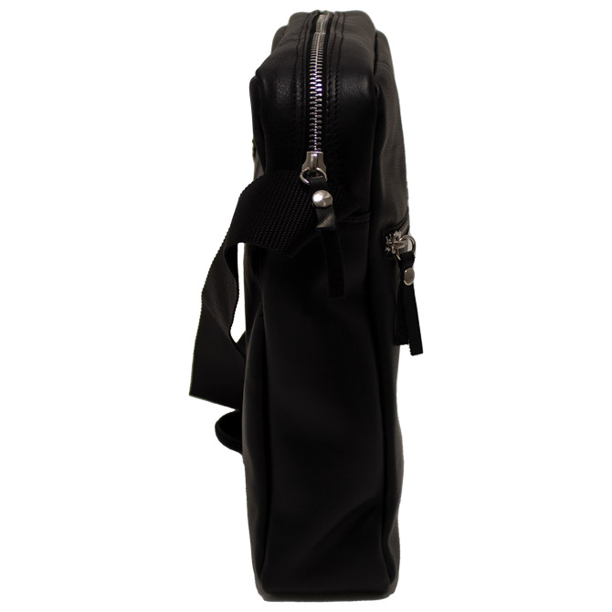 kožna; muška; ima: glavni odjeljak sa zatvaranjem na zip, 1 džep sa zatvaranjem na zip, s vanjske strane 1 džep sa zatvaranjem na zip; podesivi remen za nošenje na ramenu (ne može se skinuti); dimenzija: 22,5x28x5 cm