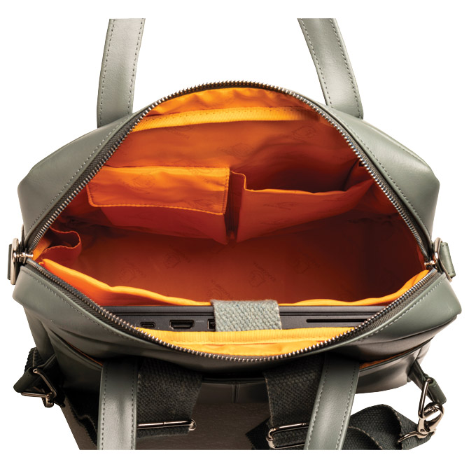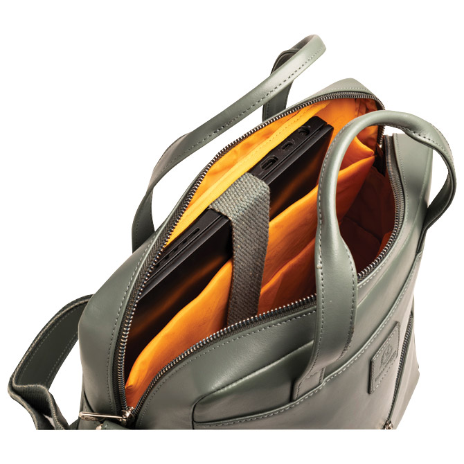 Od visokokvalitetne glatke goveđe kože, otporne na vodu i habanje, ovaj ruksak ima brojne džepove za organiziranje i transport prijenosnog računala, tableta, dokumenata, prijenosnih računala ili računalnih dodataka. Za prijenosna računala do 14 inča.