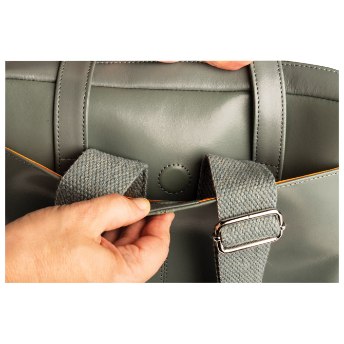 Vrlo svestrana, ova torba se može nositi u ruci, na ramenu ili kao ruksak. Naramenica se može skinuti, a 2 podesive naramenice mogu se sakriti na stražnjoj strani torbe.
