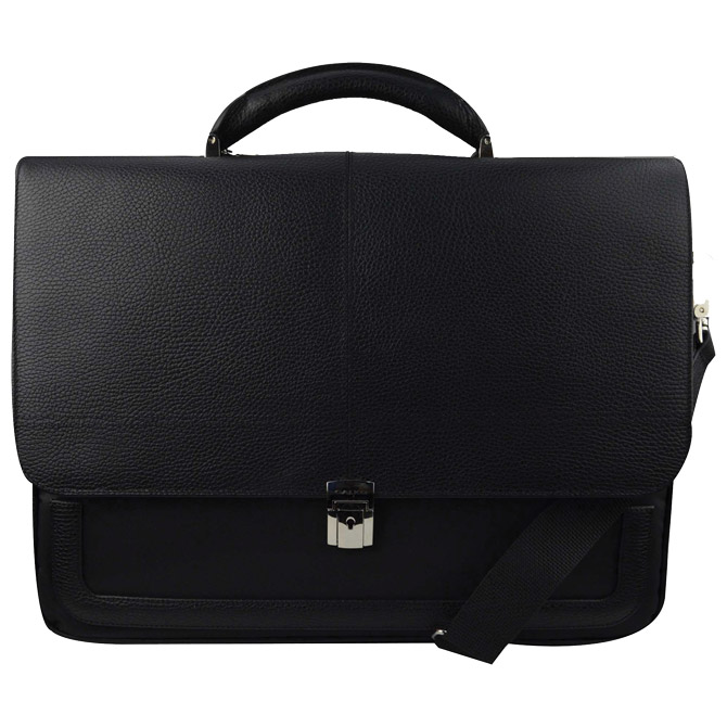 kožna; muška; za 17” prijenosno računalo; ima: glavni odjeljak sa zatvaranjem na zip; u drugom velikom odjeljku ima veliki džep sa zatvaranjem na zip, 2 manja pretinca i 3 mjesta za olovke; zatvara se kopčom (ključ); ručka za nošenje i remen za nošenje na ramenu (može se skinuti); dimenzija: 42x32x11 cm