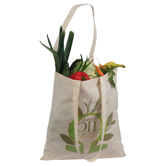pamučna; dimenzija: 37×41 cm; materijal 140 g/m2; sa dvije duge ručke (dužina ručki od šava do vrha je cca 38 cm); periva; veličina površine za tisak: 26×27 cm; težina: 67 g