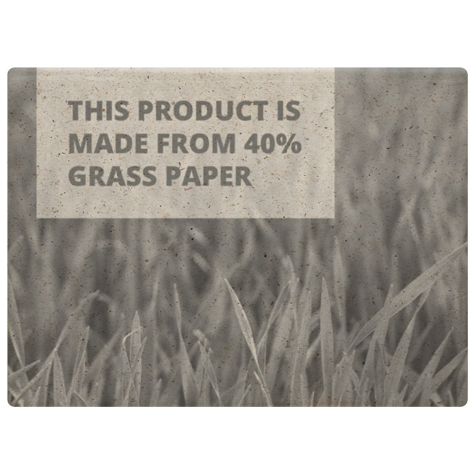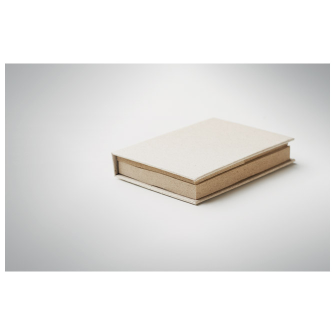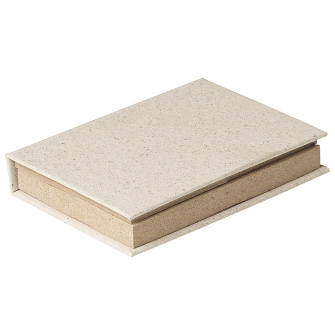 2 bloka samoljepljiva natur (dimenzija: 72×100 mm, 70 listova + dimenzija: 50×72 mm, 25 listova) i 3 bloka zastavica natur (dimenzija: 20×50 mm, 26 listova); izrađeni od od recikliranog papira i trave; dimenzija: 8x10x2 cm; u kartonskoj korici