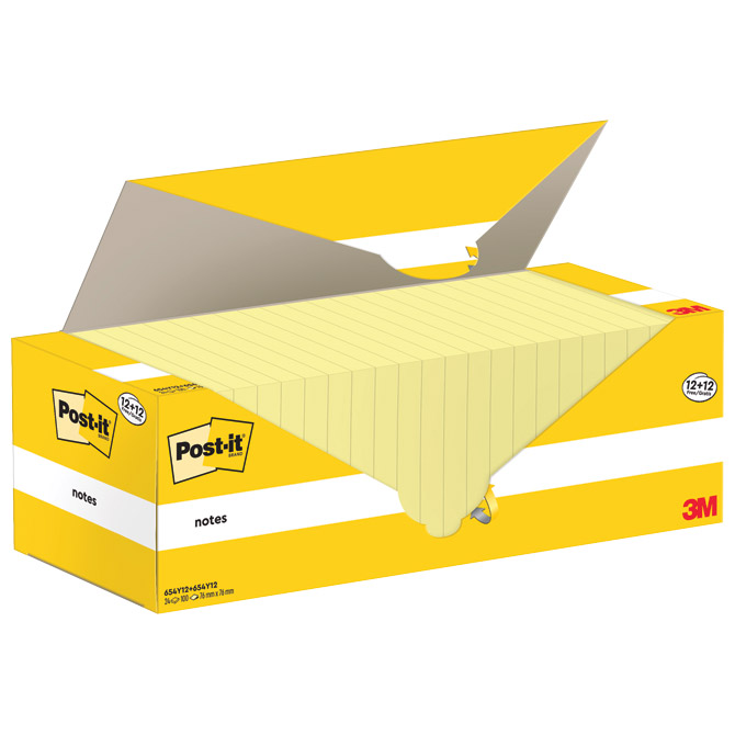 Blok samoljepljiv 76×76 mm 100L Post-it 3M.654 žuti 12+12 gratis