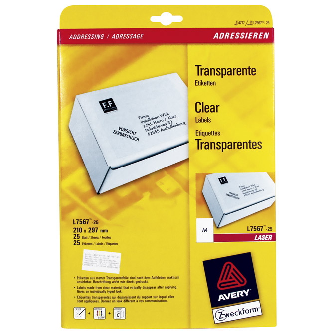 Etikete LK 210×297 mm polyester pk25L Zweckform L7567-25 prozirne (mliječno)