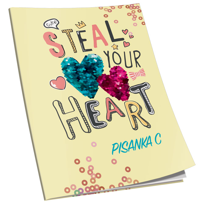 format: B5; papir: 80 g/m2; korice soft (gumirane) i parcijalno glitter (kunstdruck 300 g/m2); sa predlistom i zalistom