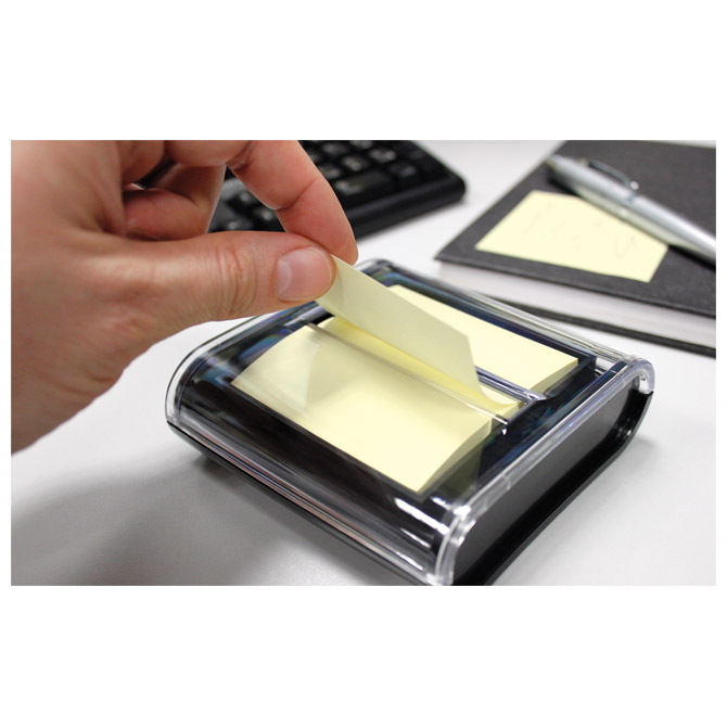 dimenzija bloka: 75×75 mm; 50 listova; mogućnost višestrukog premještanja; ljepilo je bez otapala izrađeno na bazi vode; ima FSC® certifikat; boja bloka: žuta; u kartonskoj kutiji