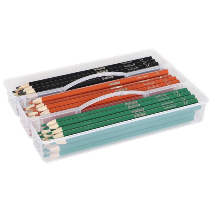 šiljene; debljina mine: 2,9 mm; šesterokutne; živopisne boje; boje su odvojene pregradama; set od 216 boja (12 boja x 18 komada); PP kutija s 4 ladice; svaka ladica ima 3 pretinca i dvije ručke za nošenje; bočno zatvaranje s kopčama; s ručkom za nošenje