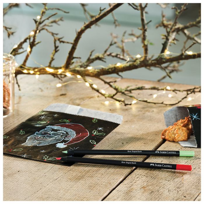 šiljene; trokutaste; ergonomske; crno drvo i izuzetno mekana mina: čiste boje!; živopisne boje; jako mekan vrh za veću pokrivenost površine papira bojanjem; za crtanje na crnom, bijelom i svim papirima u boji; posebno je otporna na lomljenje (specijalno spajana – SV); eko olovka (drvo iz certificiranog održivog šumarstva)