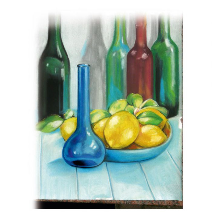 četvrtasta; dimenzija: 10×63 mm (fi x duljina); omotana u papir; mekana; otporna na svjetlost ako se fiksira; izvrsno se može sjenčati (prstima, tkaninom, kistom..); intenzivne živopisne boje; kartonska kutija; blister