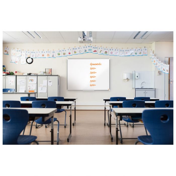 NanoClean™ površina: čelična magnetna površina ploče pruža povećanu mogućnost brisanja, za umjerenu upotrebu; tanak i elegantan aluminijski okvir koji odgovara svakom okruženju; ploča se fiksira tradicionalnom montažom kroz kutove na zid; koriste se markeri za bijelu ploču; ima elegantni držač za markere i brisač na donjem rubu ploče; sadrži: crni Nobo marker za bijelu ploču; garancija na površinu ploče 15 godina