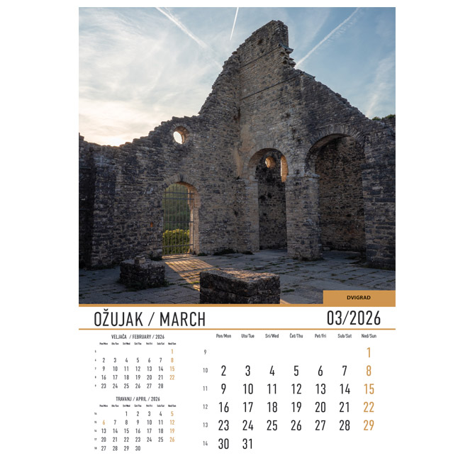 Kalendar “Dvorci i utvrde 2026” 13 listova, spirala
