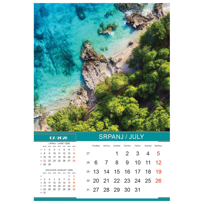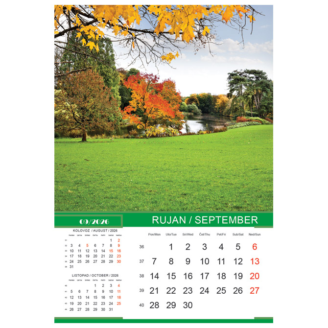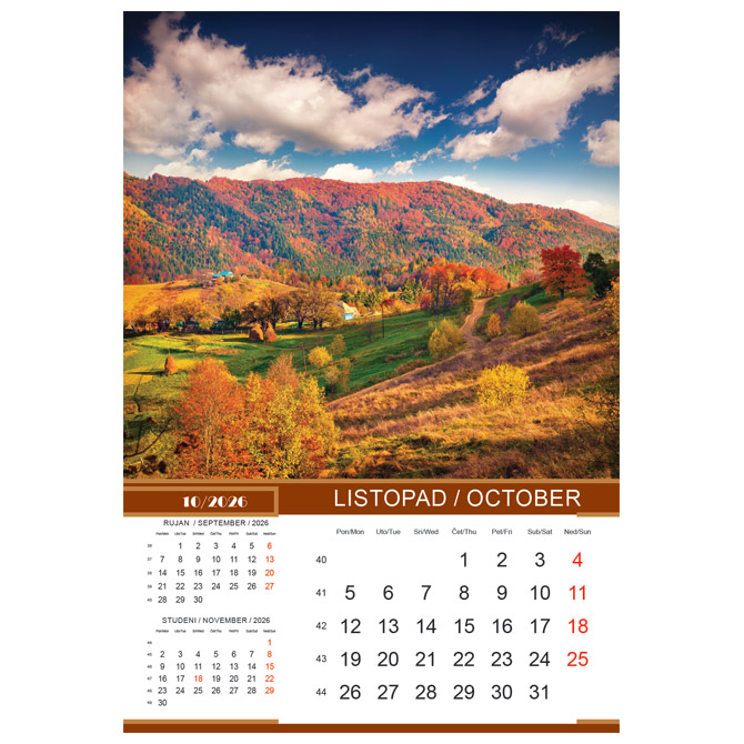 13 listova; dimenzija: 33×48 cm; pasica za dotisak 6 cm; spirala