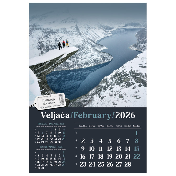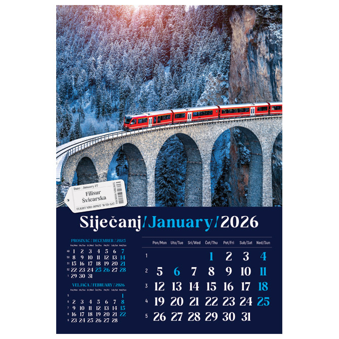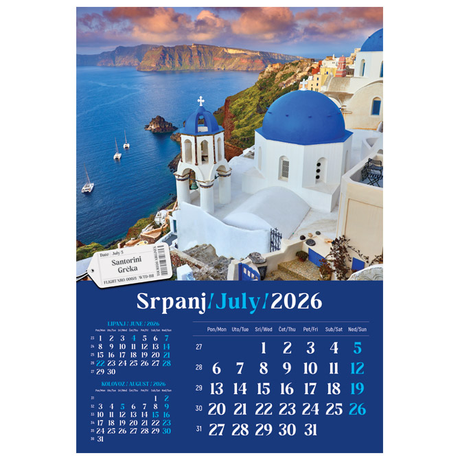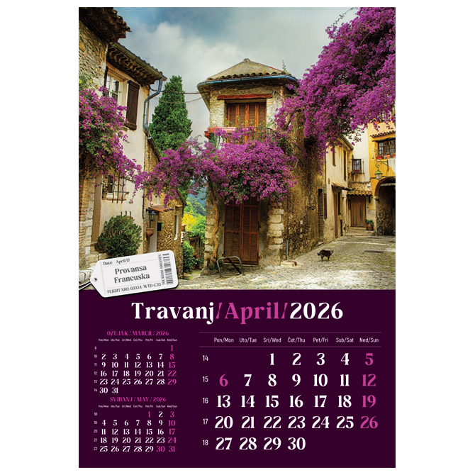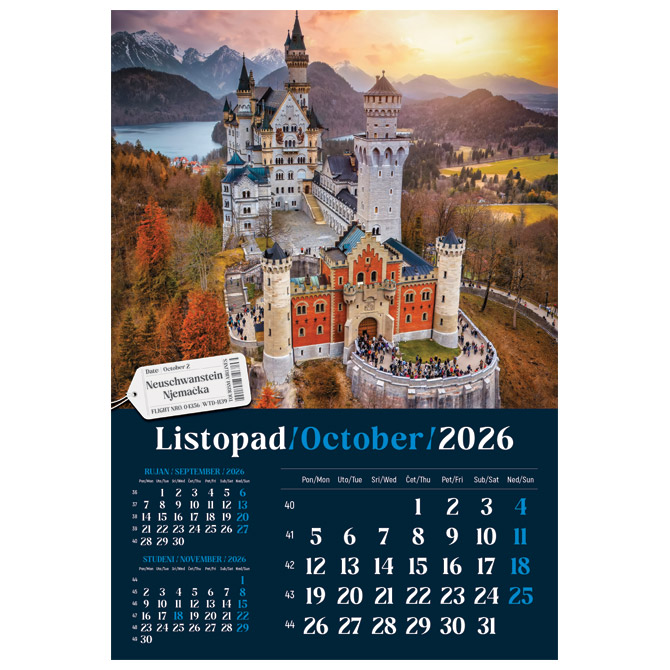 Kalendar “Putujem Europom 2026” 13 listova, spirala
